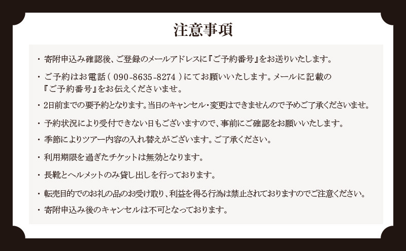 ※ご予約はお電話(090-8635-8274)にてお願いいたします。メールに記載の『ご予約番号』をお伝えくださいませ。