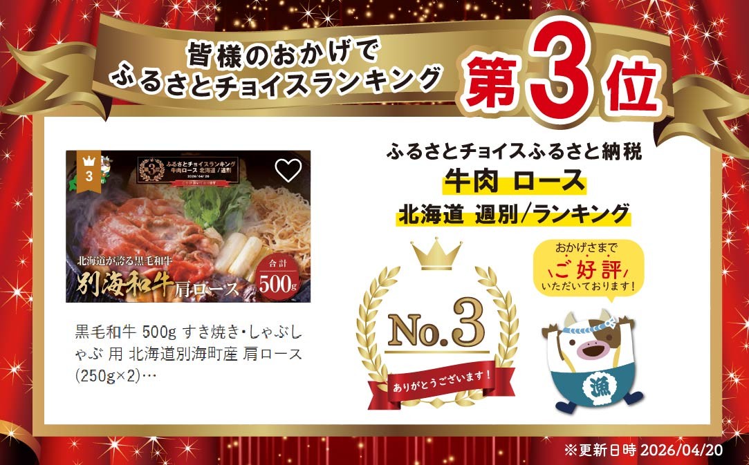 チョイスPayポイントと交換できる品 ランキング第3位獲得!黒毛和牛 500g すき焼き・しゃぶしゃぶ 用 北海道別海町産 肩ロース(250g×2)<別海和牛> FF0000002 (北海道 別海町 しゃぶしゃぶ すき焼き 別海和牛 黒毛和牛 牛 肉牛 国産牛 ふるさとチョイス ふるさと納税 仕組み キャンペーン 限度額 計算 ランキング やり方 シミュレーション チョイス チョイスマイル )