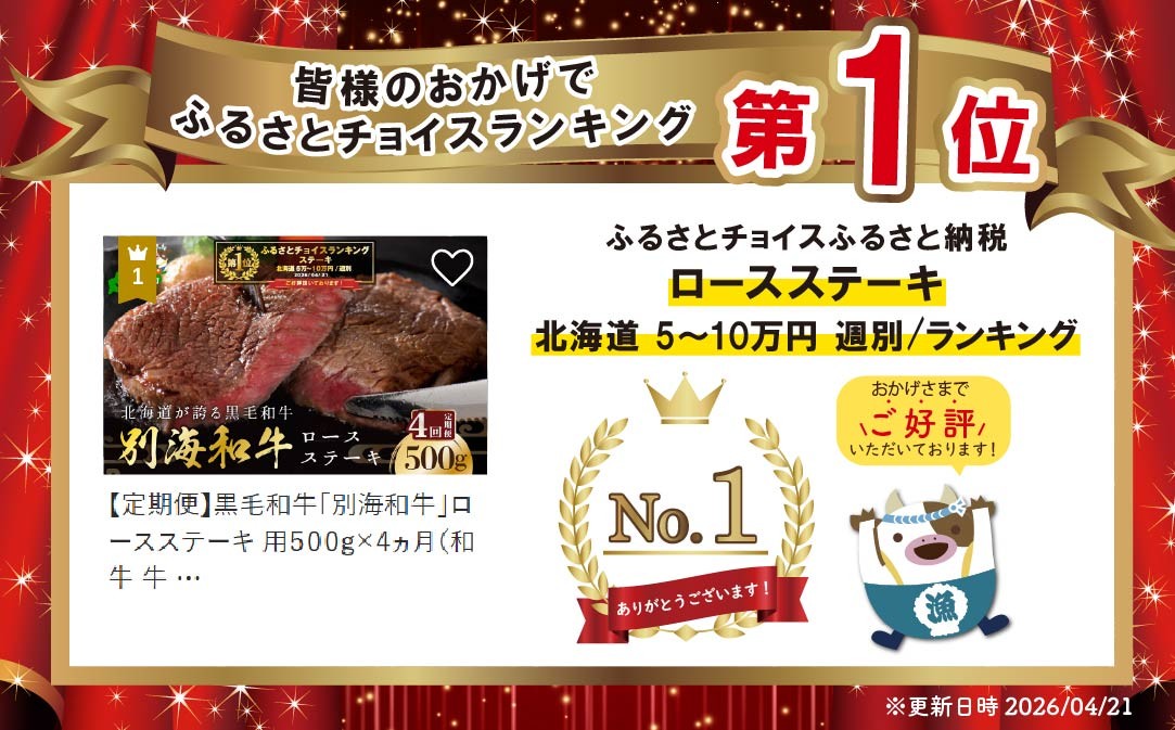 チョイスPayポイントと交換できる品 別海町からお届け!北海道の大自然が育んだ黒毛和牛!餌にこだわり味わいを追求 【定期便】黒毛和牛「別海和牛」ロースステーキ 用500g×4ヵ月(和牛 牛 牛肉 2kg 肉 お肉 国産 赤身肉 赤身 ふるさと納税 和牛 北海道 別海町 ふるさとチョイス ふるさと納税 仕組み キャンペーン 限度額 計算 ランキング やり方 シミュレーション チョイス チョイスマイル 肉 牛肉 定期便 )