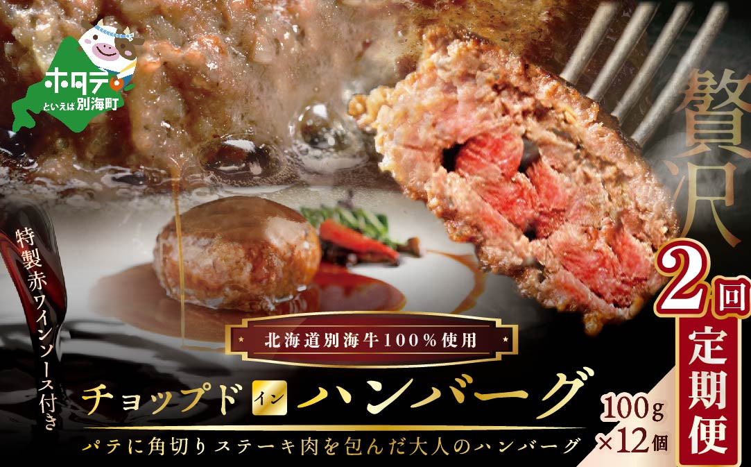 【定期便】「別海牛チョップドインハンバーグ 100g×12個 」×【2回配送】