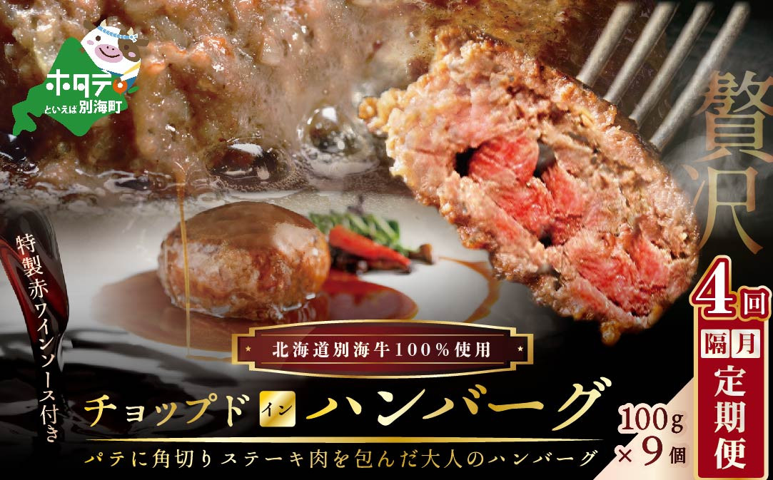 【隔月定期便】「別海牛チョップドインハンバーグ 100g×9個 」 × 4ヵ月【全4回】