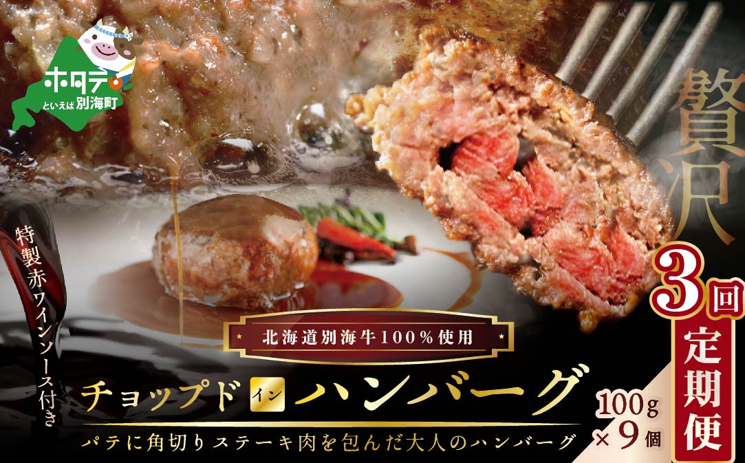 【定期便】「別海牛チョップドインハンバーグ 100g×9個 」×【3回配送】