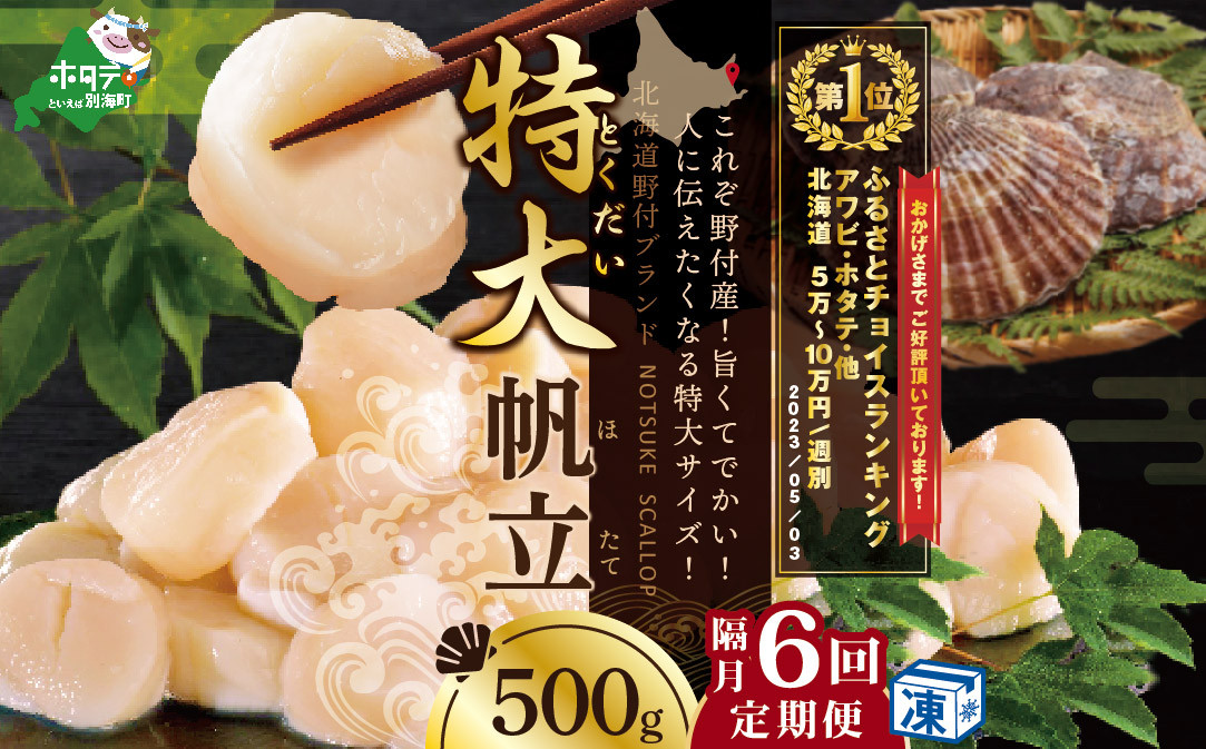 チョイスPayポイントと交換できる品 【隔月6回定期便】ホタテ の中の ほたて 野付漁協自ら加工だから 旨さ 訳あり ホタテ 野付産 冷凍 ホタテ 500g 特大 ( 貝柱 ほたて ホタテ 北海道 別海町 帆立 大 海鮮 特大 訳あり ふるさとチョイス ふるさと納税 仕組み キャンペーン 限度額 計算 ランキング やり方 シミュレーション チョイスマイル 大容量 )