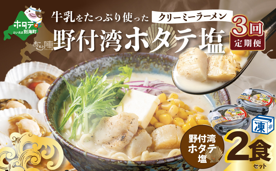 チョイスPayポイントと交換できる品 牛乳をたっぷり使ったコク深くクリーミーな味わいの野付湾ホタテ塩ラーメン! 【毎月定期便】牛乳をたっぷり使ったクリーミーラーメン(野付湾ホタテ塩)×2食セット ×3カ月【be035-0941-100-3】(あら陣株式会社)(北海道 別海町 ラーメン 牛乳 ホタテ コーン バター 塩ラーメン ふるさとチョイス ふるさと納税 仕組み キャンペーン 限度額 計算 ランキング やり方 シミュレーション チョイス チョイスマイル )