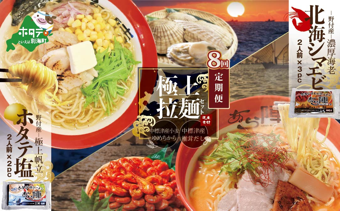 チョイスPayポイントと交換できる品 北海道の食材が織り成すあら陣渾身の一杯をお楽しみください。 【毎月定期便】野付湾北海シマエビラーメン3袋・ホタテ塩ラーメン2袋セット×8カ月【AJM080088】( ふるさとチョイス ふるさと納税 仕組み キャンペーン 限度額 計算 ランキング やり方 シミュレーション チョイス チョイスマイル )