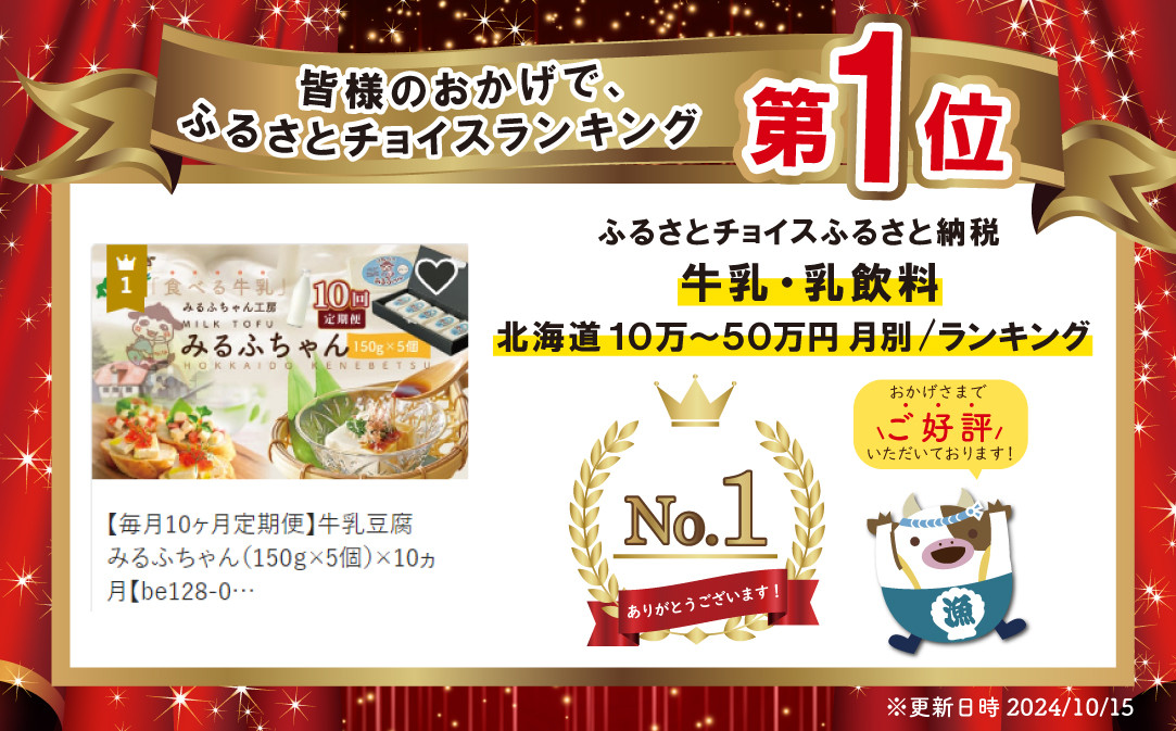 チョイスPayポイントと交換できる品 酪農家のみが知るご馳走『牛乳豆腐』 御礼!ランキング第1位獲得!【毎月10ヶ月定期便】牛乳豆腐 みるふちゃん(150g×5個)×10ヵ月【be128-0858-100-10】(牛乳 豆腐 ぎゅうにゅう とうふ 北海道 ふるさとチョイス ふるさと納税 仕組み キャンペーン 限度額 計算 ランキング やり方 シミュレーション チョイス チョイスマイル )