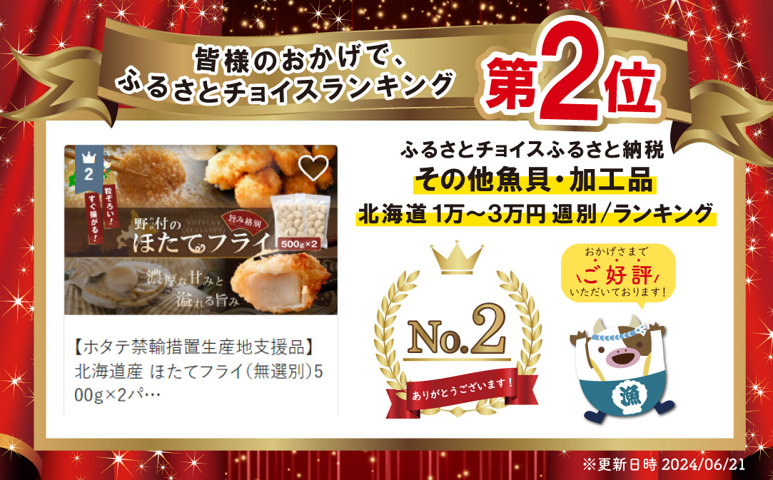 チョイスPayポイントと交換できる品 濃厚な甘みと溢れる旨み! ランキング第2位獲得!北海道産 ほたてフライ(無選別)500g×2パック【KS0000002】 ふるさとチョイス ふるさと納税 仕組み キャンペーン 限度額 計算 ランキング やり方 シミュレーション チョイス チョイスマイル