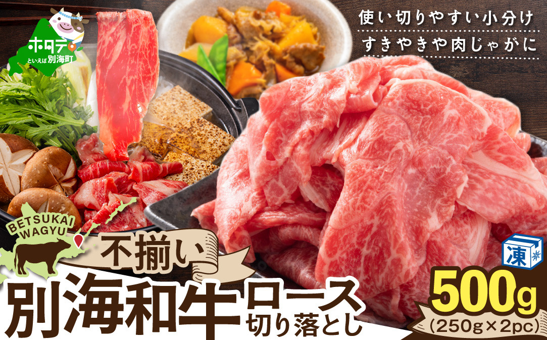 チョイスPayポイントと交換できる品 丁寧に育てられた別海和牛。贅沢な味わいを! 北海道 別海町 別海和牛 ロース 不揃い 切り落とし 500g(250g×2パック)【FF0000026】( ふるさと納税 人気 国産 ふるさと 北海道 別海町 牛肉 牛 肉 )