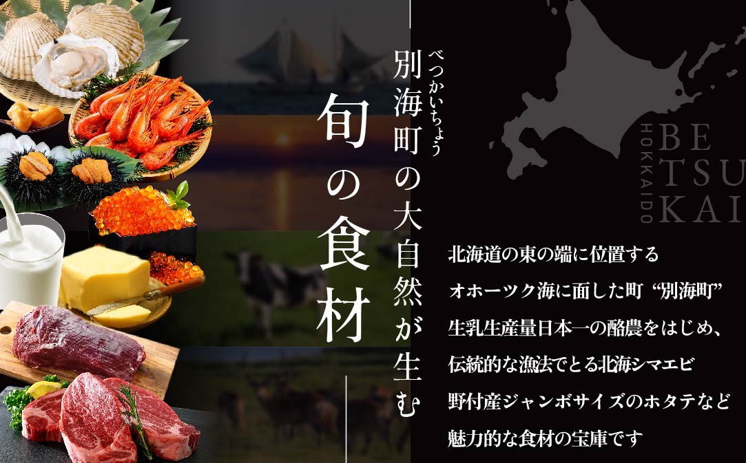 ご自宅に出張料理人を招いて、別海町の特産品を使用したフルコースを堪能できるお食事券(2名様分)をお届けします。