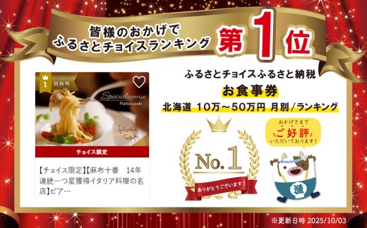チョイス限定 チョイスPayポイントと交換できる品 【チョイス限定】御礼!ランキング第1位獲得!【麻布十番 14年連続一つ星獲得イタリア料理の名店】ピアットスズキ「別海町コース」お食事券2名様【CC0000238】( ふるさと納税 レストラン ディナー コース料理 ふるさと納税 食事 ふるさと納税 食事券 東京 ふるさと 食事券 ふるさと 食事 ふるさと 食事券 東京 ふるさと納税 東京 食事券 ふるさと納税 チケット )