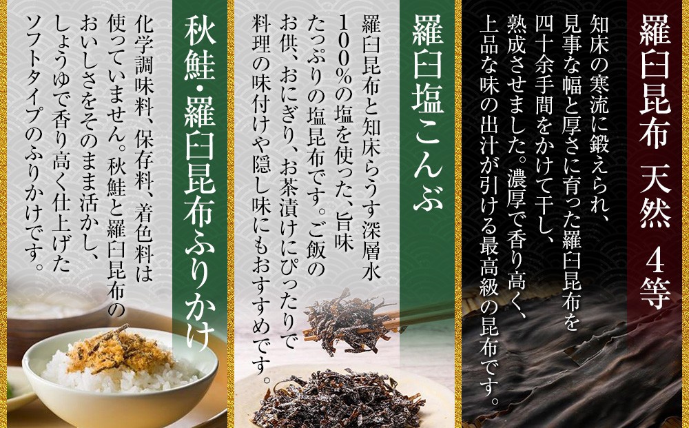 天然 4等 450gセット×塩昆布×昆布ふりかけ 北海道 知床 羅臼産 生産者 支援 応援