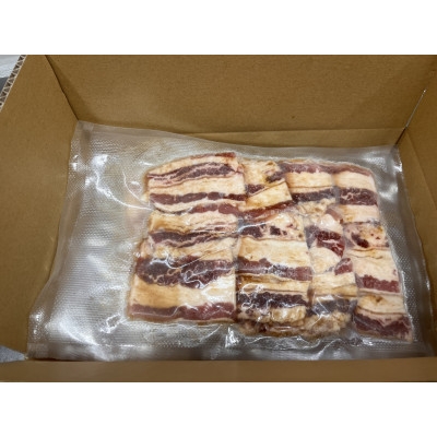 そのタレに牛バラを漬け込み真空冷凍しております。