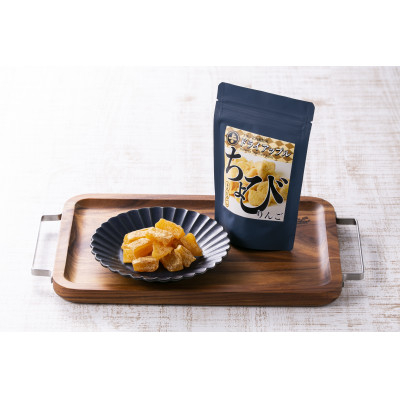 青森県産ふじのりんご100%を使用したセミドライの糖蜜漬けりんごです。
