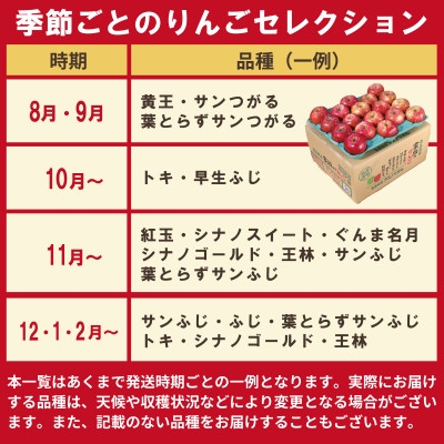 りんご好きの皆様へ贈る冬の定期便!令和8年12月~令和9年2月の3か月間、旬のおすすめ品種を毎月お届けする【全3回】のりんご定期便です。