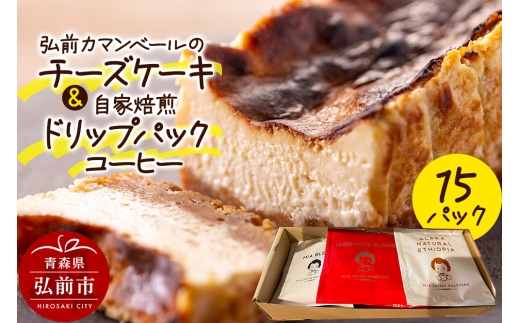 自家製弘前カマンベールのチーズケーキ 1個と自家焙煎ドリップパックコーヒー(1人前用 3種類各5パック/計15パック)セット スイーツ