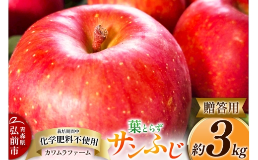 りんご 葉とらず サンふじ 約3kg カワムラファーム 贈答用 青森 果物 フルーツ 林檎 リンゴ くだもの
