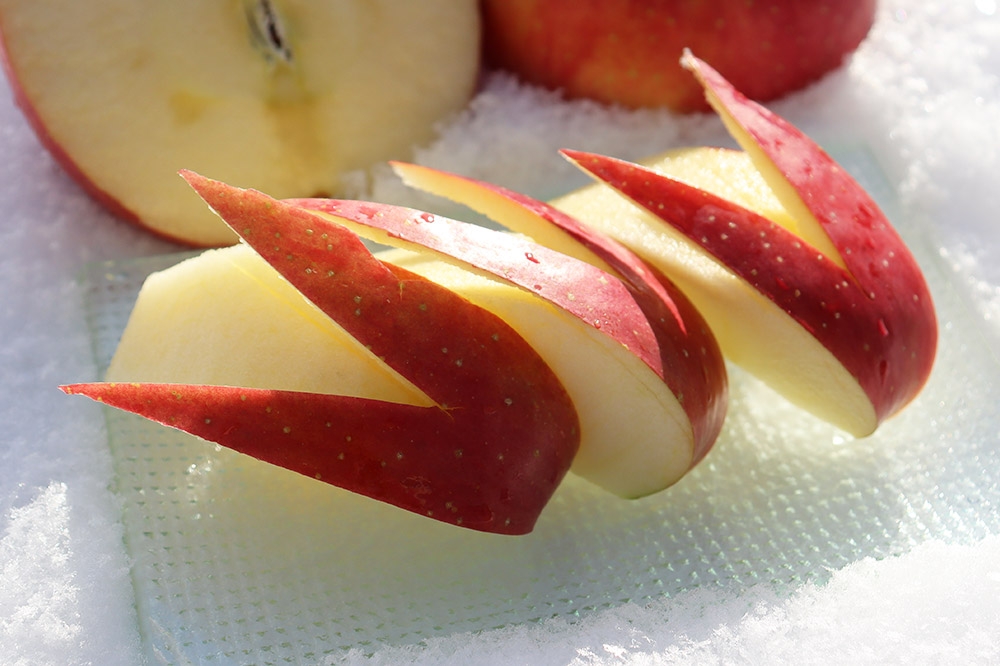 りんごの王様と言われる「ふじ」。酸味と甘味のバランスが抜群で、ひとくちほおばると口の中にジュワッと果汁が溢れます。