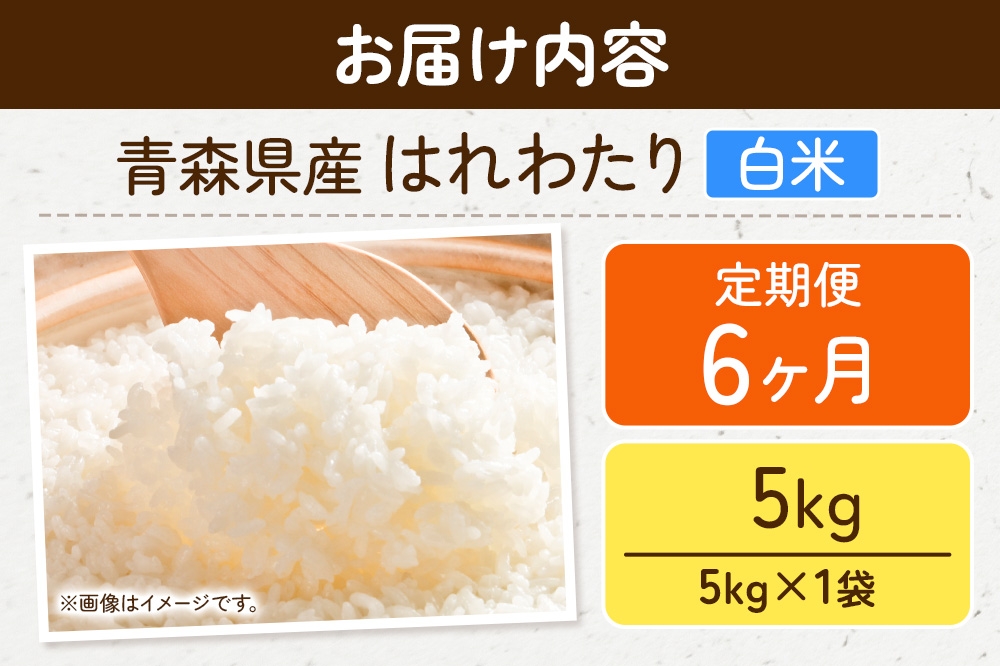 《定期便6ヶ月》新米 米 令和7年産 青森県弘前市産 はれわたり【精米】5kg(5kg×1袋)