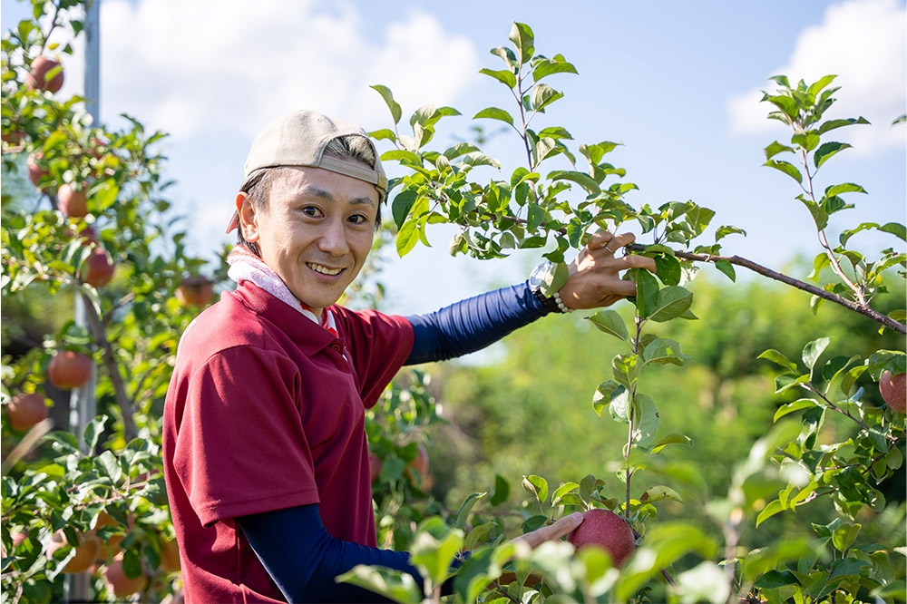 袋をかけずに栽培し、太陽をたくさん浴びて育つ「ふじ」を「サンふじ」と呼びます。