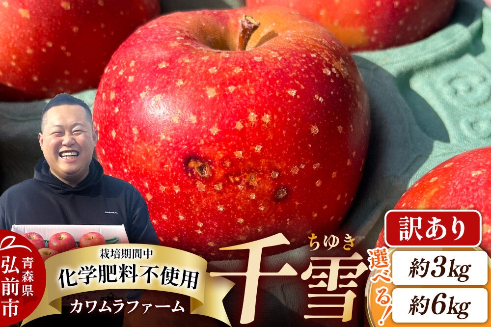 酸味が少なくて甘みが強く、香気多いのが特徴のりんご 【26年10月下旬~発送】りんご 千雪【訳あり】【選べる約 3kg/6kg】カワムラファーム 青森 果物 フルーツ 林檎 リンゴ くだもの [先行受付 アップル おいしい ちゆき 果実 果物 赤色 美味 林檎 弘前市]