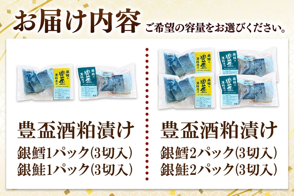 日本料理 山口と、三浦酒造のコラボレーション 純米大吟醸ねり粕100%使用 豊盃酒粕漬け2種【銀鱈・銀鮭】各3切れ入り【選べる 各1パック/各2パック】冷凍 クール便 日本料理 山口 青森県 弘前市 [酒粕漬け 純米大吟醸 焼き魚]