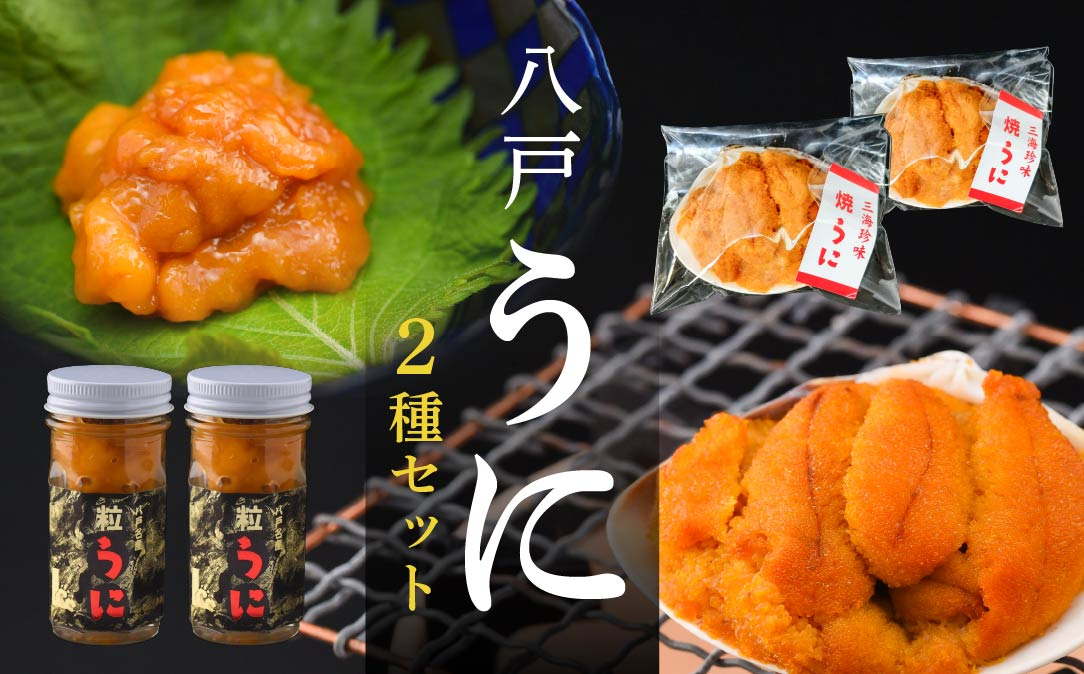 粒うにと焼うにのセットです! 八戸 うに 2種セット 粒うに (紫) 焼うに