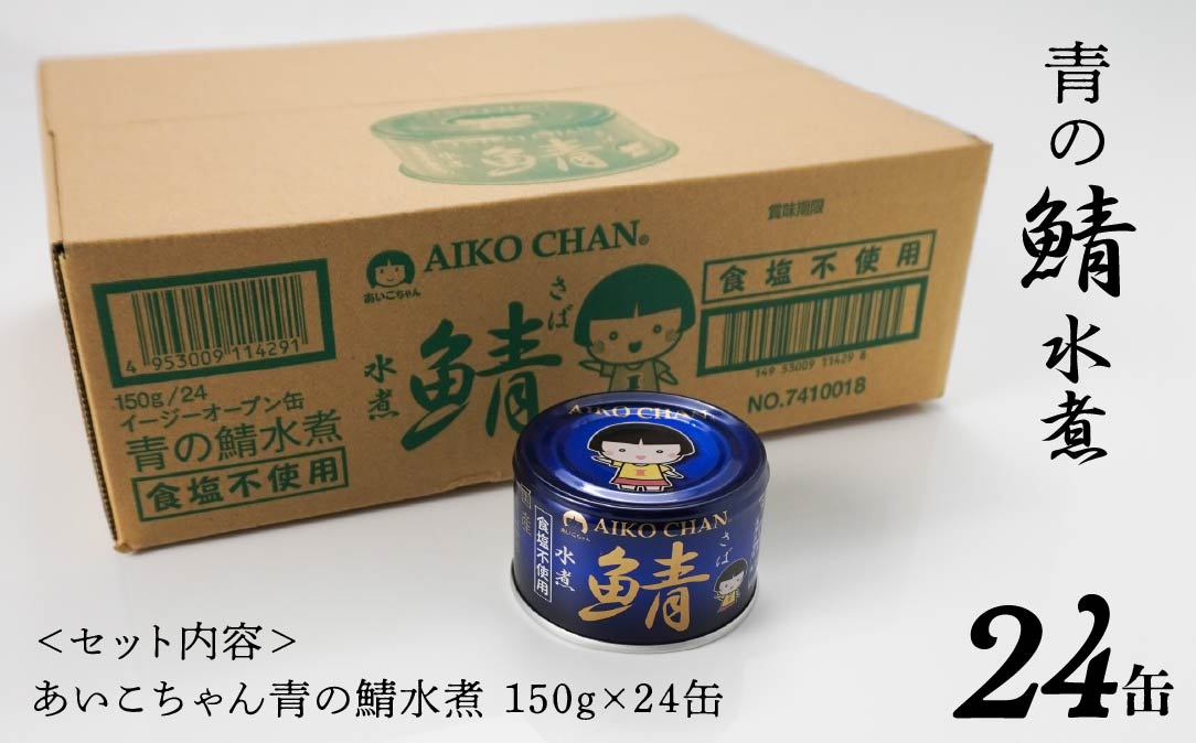脂がたっぷりと乗った肉厚な鯖。本来の旨味をいつでも存分にお楽しみいただけます。 あいこちゃん 青の鯖水煮 食塩不使用 150g 24缶 セット 合計3.6kg 鯖 サバ さば 鯖缶 サバ缶 さば缶 水煮 惣菜 おかず おつまみ 缶詰 缶詰め 缶づめ 非常食 保存食 長期保存 青森県 八戸市