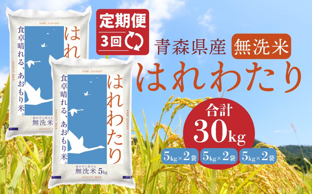 無洗米 はれわたり 米 お米 ごはん 白米 精米 こめ コメ ビタミン ミネラル 10kg 定期便 3回 合計30kg 青森県 八戸市