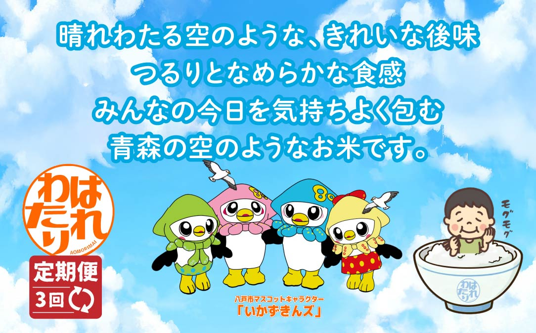 毎日食べても、また食べたい、青森の空のような飽きのこないお米です。 【3ヶ月定期便】青森県産はれわたり 5kg 合計1.5kg いかずきんズモデル 米 お米 コメ 白米 精米 ごはん ご飯 はれわたり 定期 3回 青森県 八戸市
