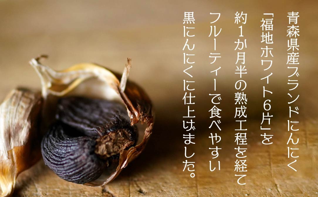 青森県産ブランドにんにく「福地ホワイト6片」を約1か月半の熟成工程を経て、フルーティーで食べやすい黒にんにくに仕上げました。
