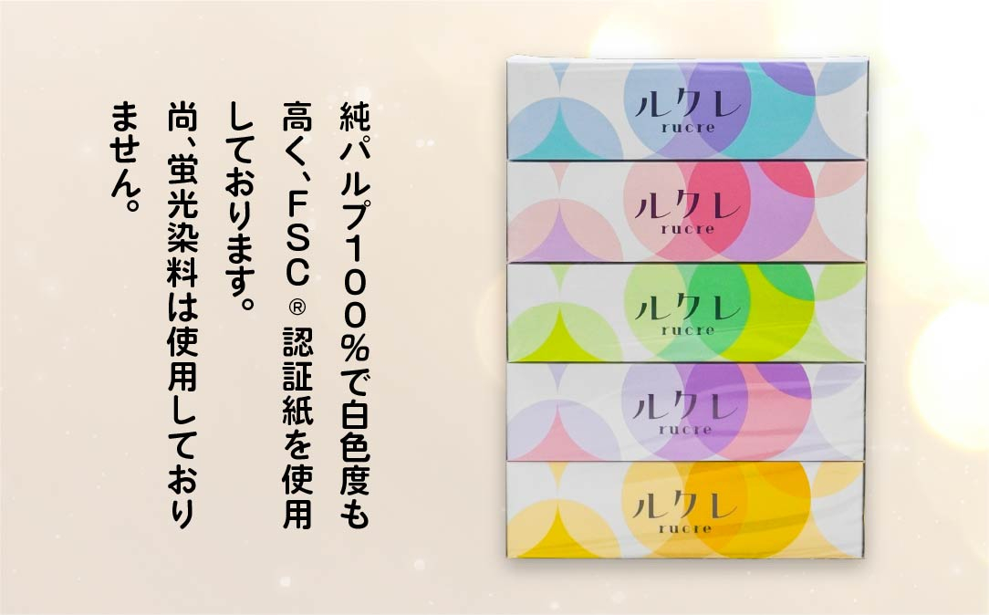 純パルプ100%で白色度も高く、FSC®認証紙を使用しております。 ルクレFSC®認証 フェイシャルティシュ ティッシュペーパー 5箱×12