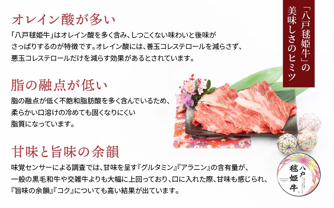 上品な甘み、脂質の口溶けの良さも特徴です。 八戸 毬姫牛 肩ロース すき焼き・しゃぶしゃぶ 600g