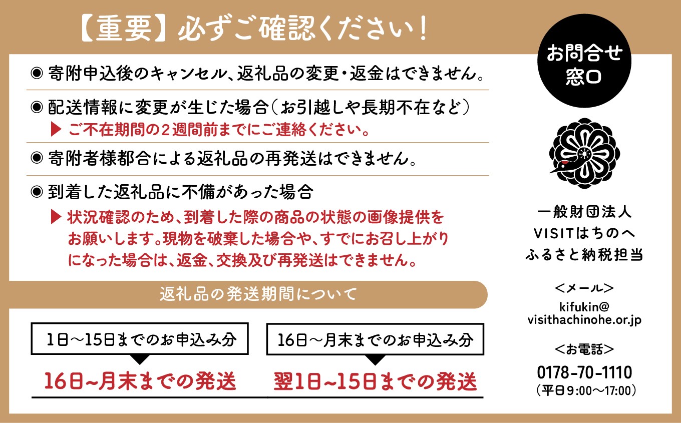 | 事業者 | 一般財団法人VISITはちのへ 他のお礼の品を見る |
