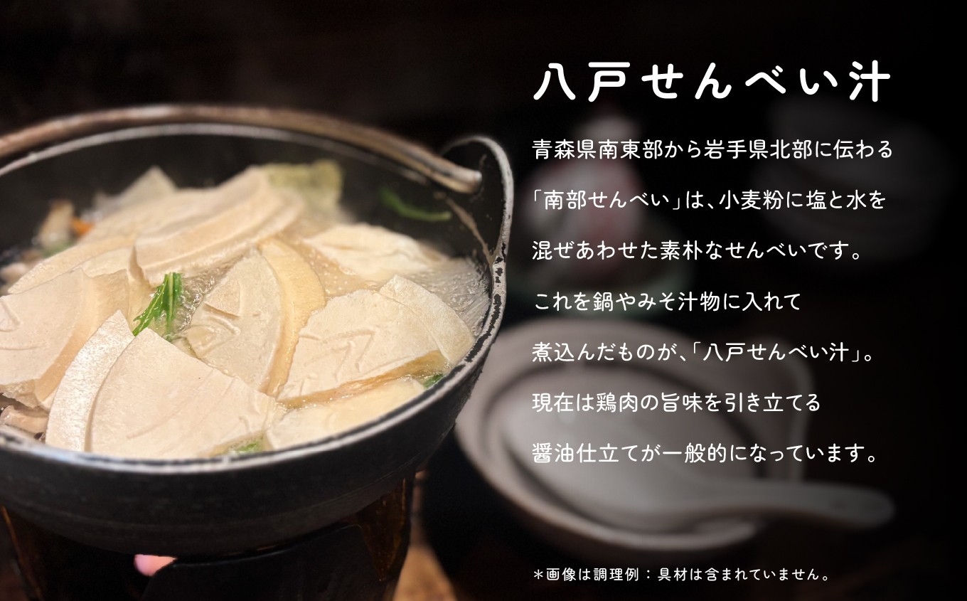 煮込んでも溶けない、こだわりの「厚焼き・固焼き」製法。 八戸せんべい汁の醍醐味である“食感”を追求し、長時間煮込んでも煮崩れしにくい一枚に仕上げました。