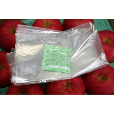 ※りんごは収穫後も呼吸をしています。箱に同梱している袋に鮮度保持剤とりんごを入れて、冷蔵庫か冷暗所で保管し水分の蒸発を防いでください。
