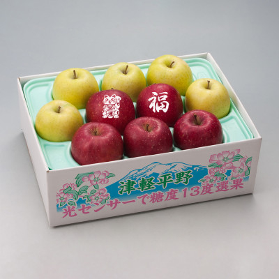 令和7年産先行予約・糖度13度選果招福りんごサンふじ王林 約2.5kg縁起物プリント招き猫・福りんご【1508216】