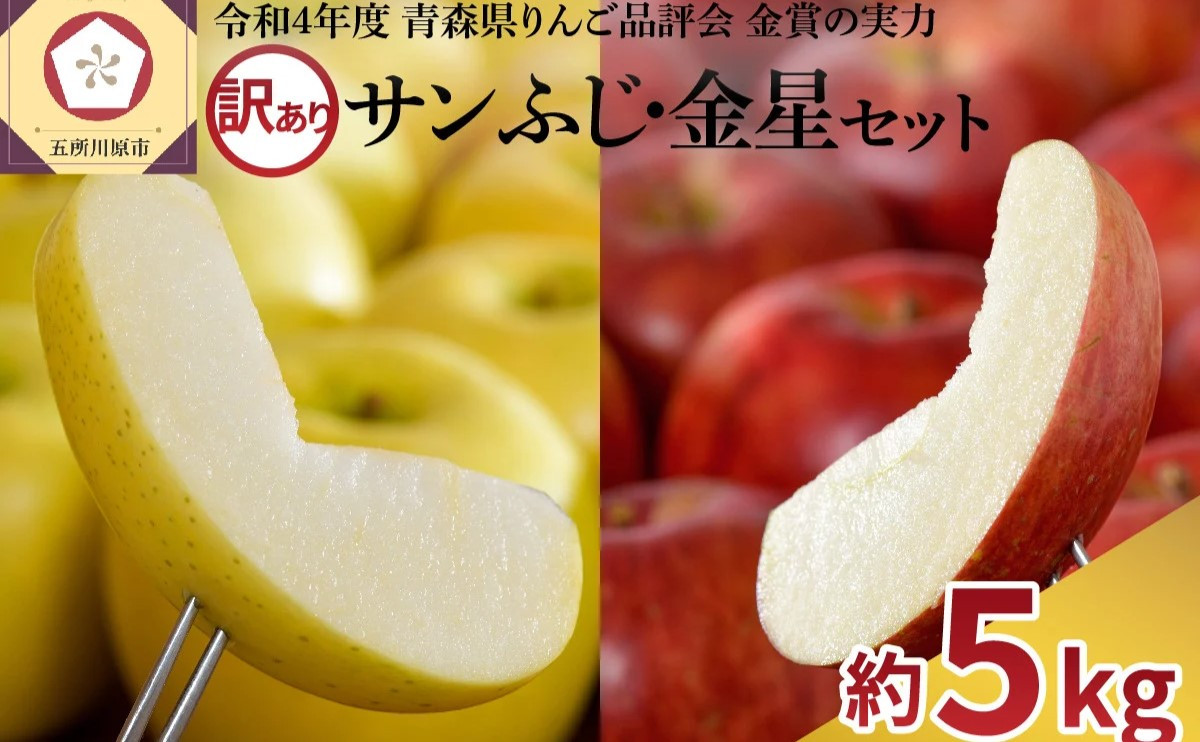 令和4年度 青森県りんご品評会金賞の実力 【選べる配送時期】【訳あり】 りんご 約5kg 家庭用 青森県産 サンふじ & 金星 セット | rinngo 林檎 リンゴ 黄色いりんご サンフジ フルーツ 果物 12月 1月 2月 青森 五所川原