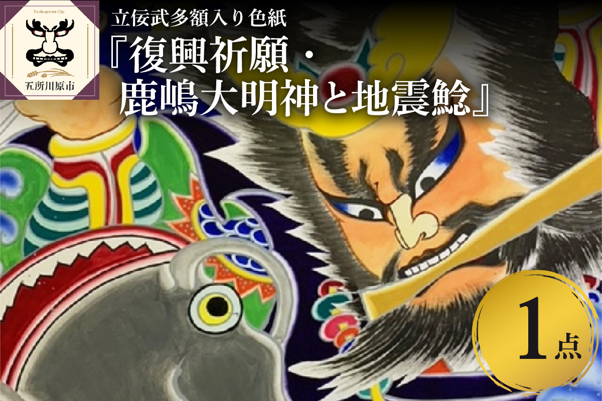 チョイス限定 立佞武多の迫力をご家庭に! 『復興祈願・鹿嶋大明神と地震鯰』立佞武多額入り色紙、制作者直筆