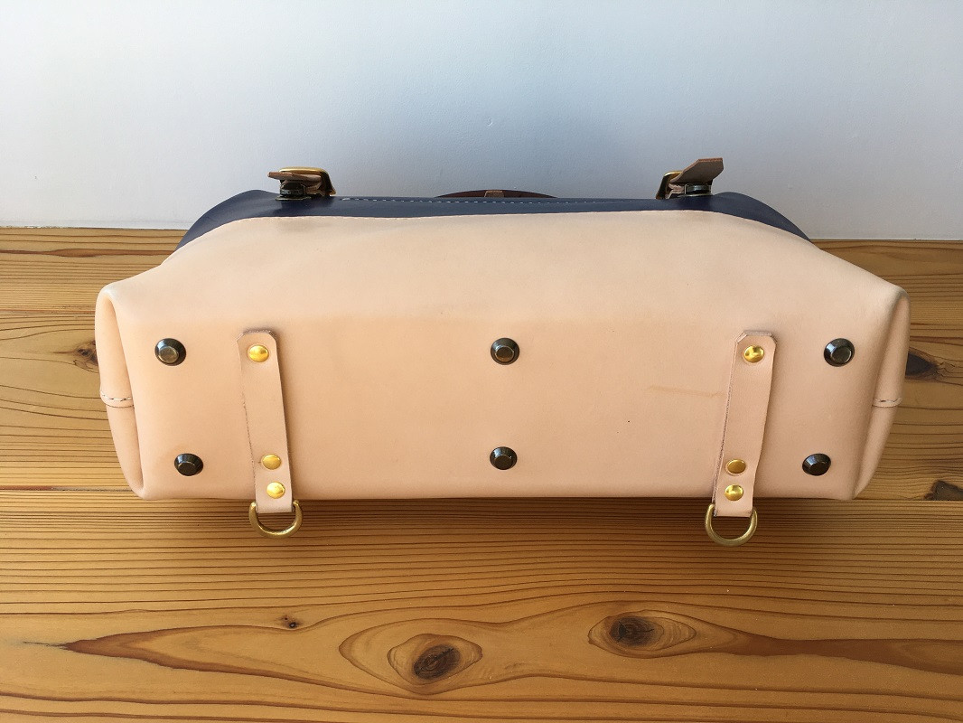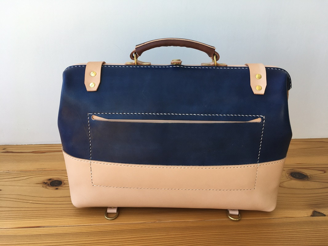 ひとりの作り手による、完全手縫い仕上げ ※紺※ 本革 レザー ドクターバッグ