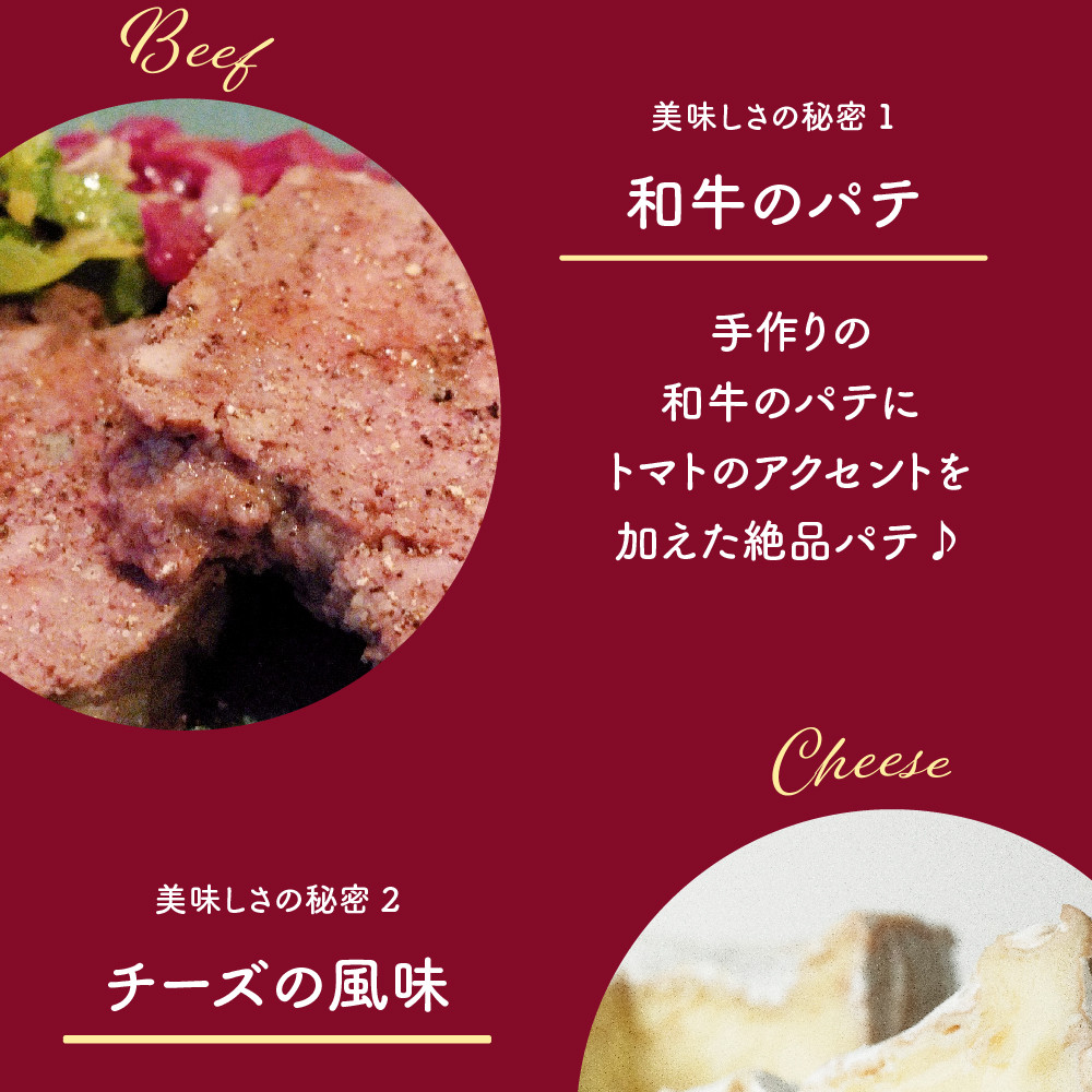 「和牛のミートパイ」は、和牛パテにトマトのアクセントを加え、その間にチーズを挟めたパイです。