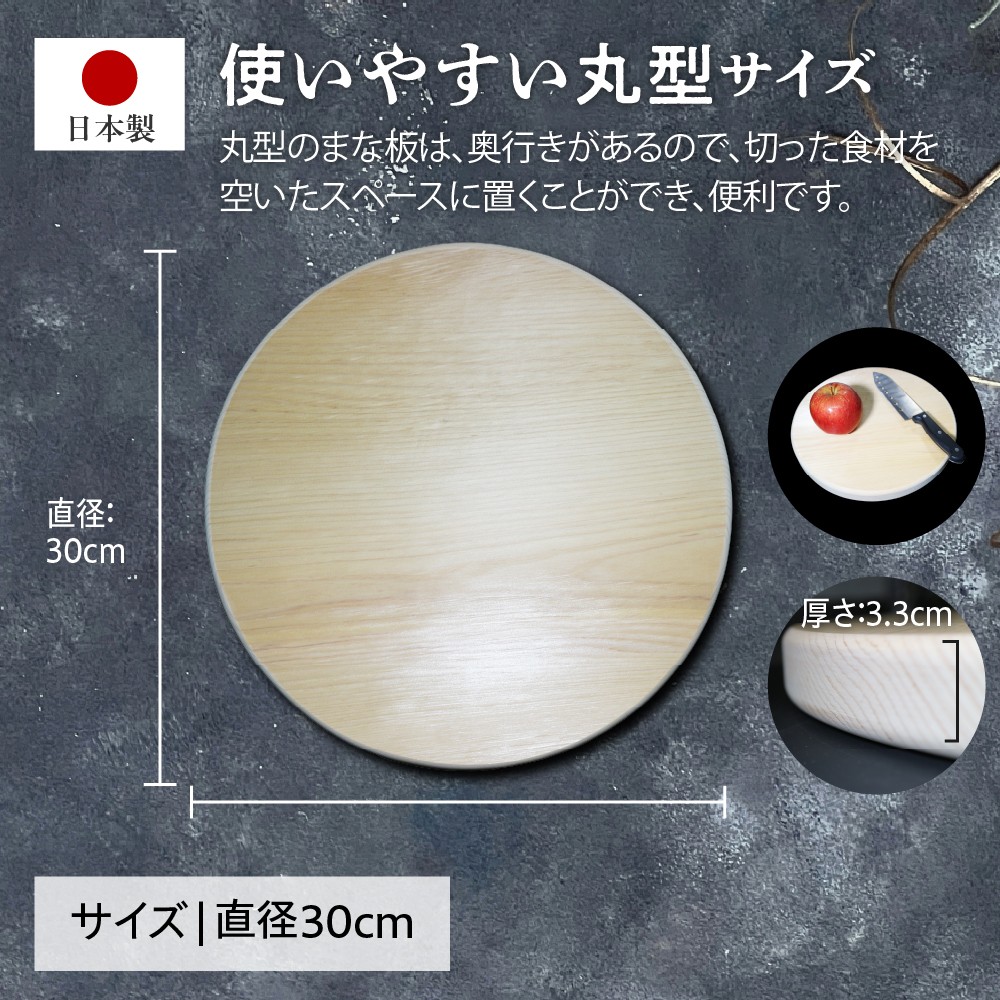 チョイス限定 専任の職人が1点1点加工! 青森ヒバまな板 丸型 直径30cm厚さ3.3cm 木製 天然木 一枚板 無垢材 送料無料 キッチン 雑貨 台所用品 ひば カッティングボード 国産 青森 五所川原 まな板 ヒバ 木のまな板 円形