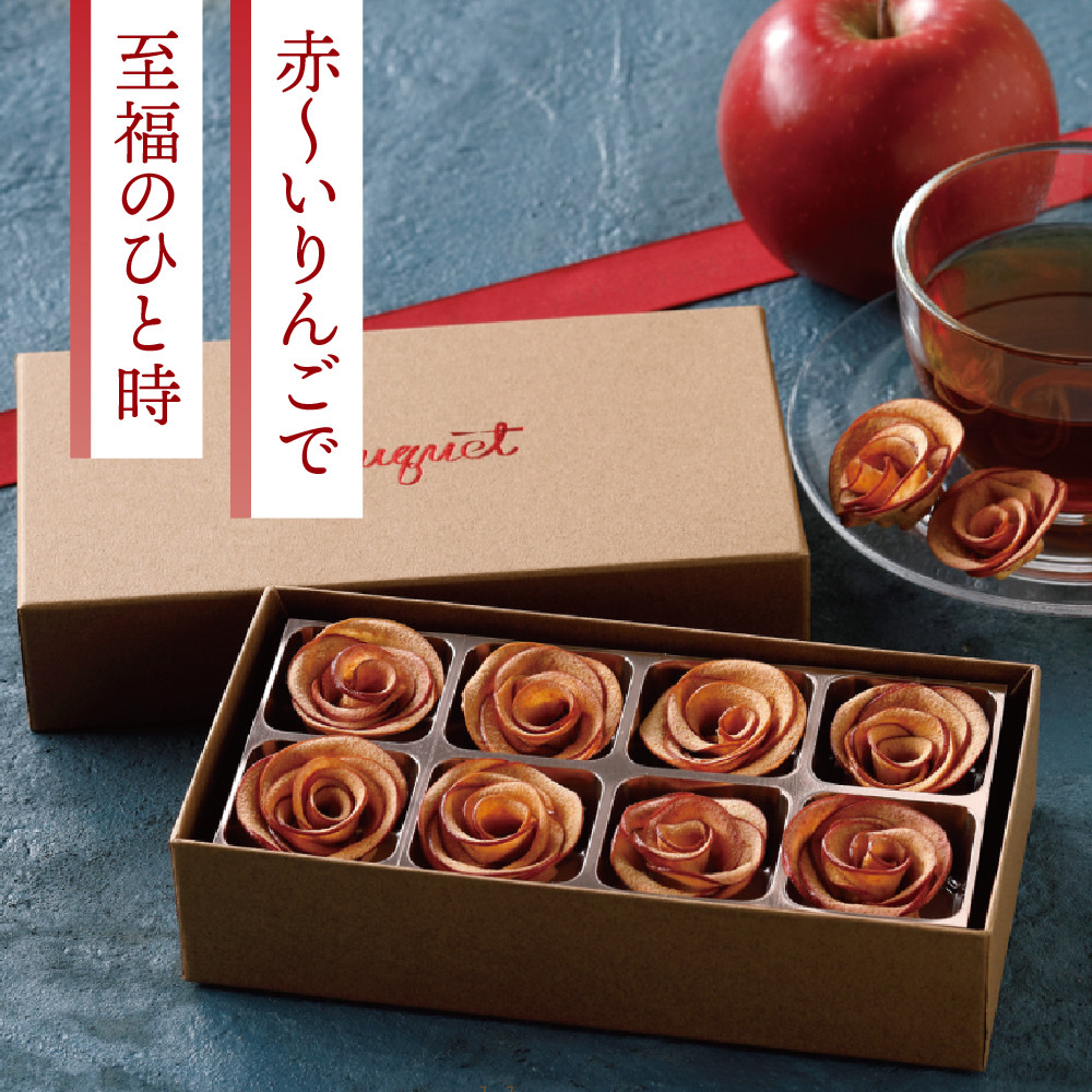 大切な人へ贈る、美味しい感謝(りんご)のカタチ ドライフルーツ りんご 青森 【bouquet】 8個入×2箱 バラの形の リンゴチップス 乾燥りんご ドライフルーツ ドライりんご 【 ロースト さくさくスイーツ 中まで赤~いりんご 贈答 プレゼント 感謝 ブーケ 】五所川原 りんごのドライフルーツ 青森りんご フルーツ 青森県五所川原市