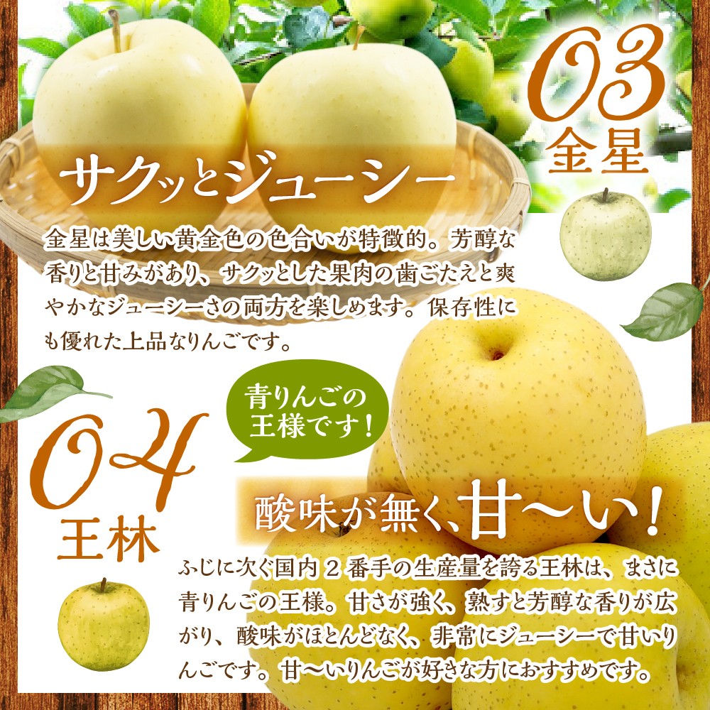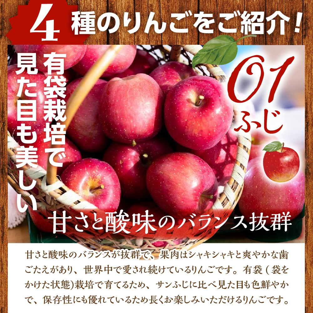 農園主が自信を持って厳選した旬の新鮮な4種(サンふじ・ふじ・金星・王林)をミックスし、詰め合わせてお届けいたします。