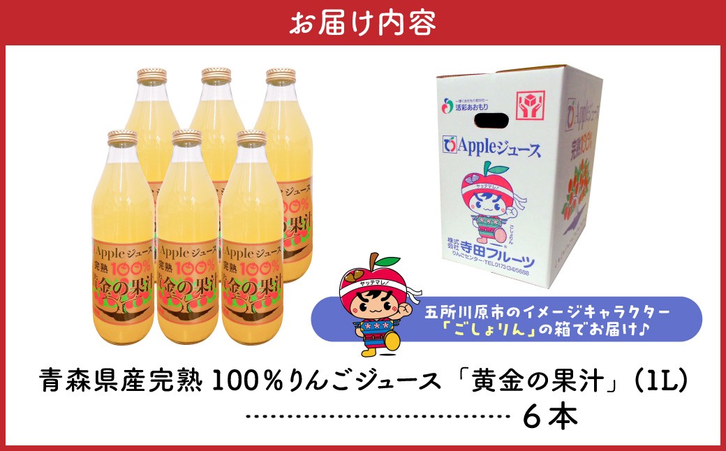 青森県産完熟100%りんごジュース 1L×6本 青森 完熟リンゴ果汁1…