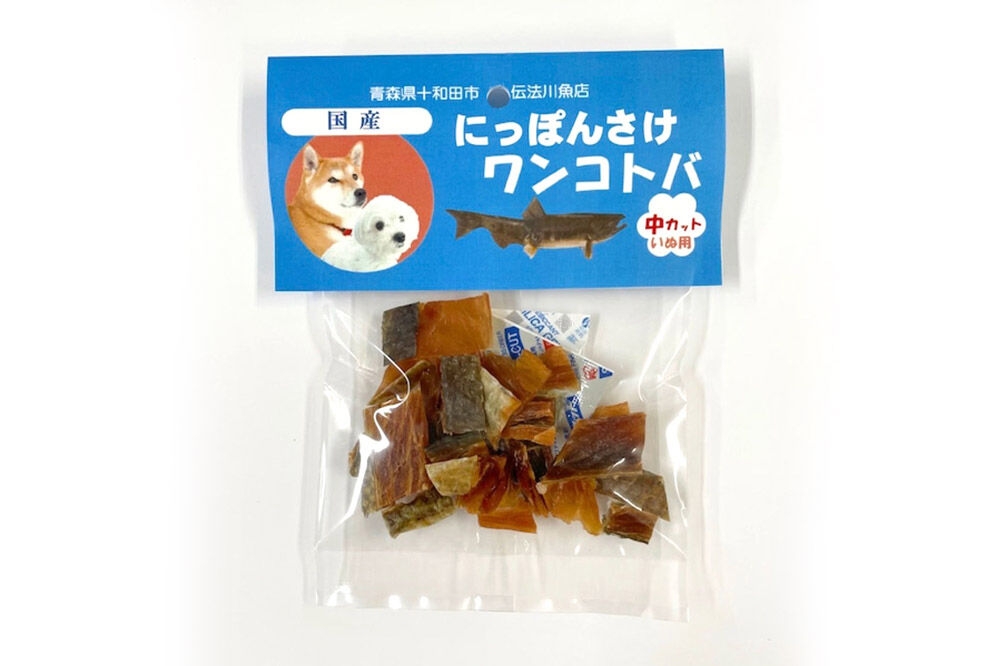 十和田湖、奥入瀬川で獲れたお魚を、ワンちゃん用にトバにしました。添加物は一切使っておりません。ワンちゃんのおやつに是非どうぞ。
