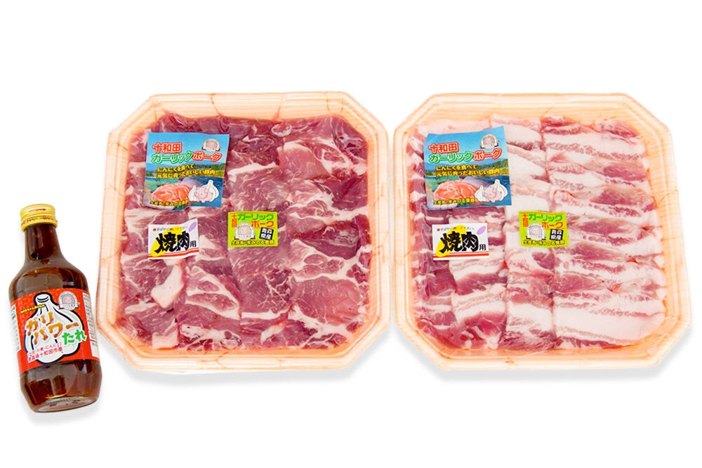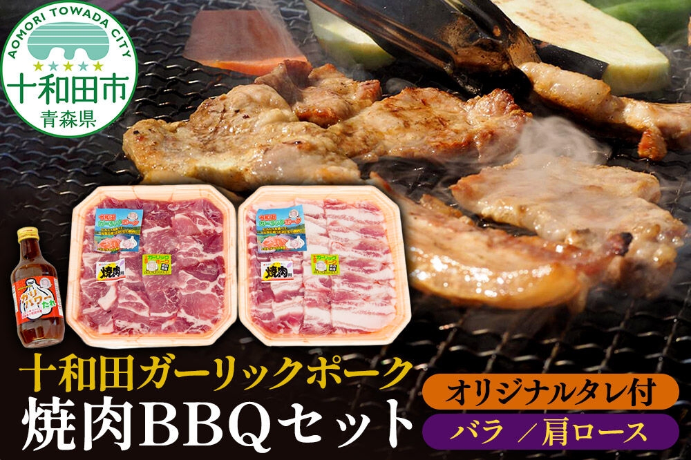 にんにくを食べて育った十和田ガーリックポーク。良質な豚肉と脂の甘さ。 十和田ガーリックポーク 焼肉BBQセット(バラ、肩ロース)オリジナルタレ付 青森県十和田市産 [豚肉 国産 冷蔵 焼肉]