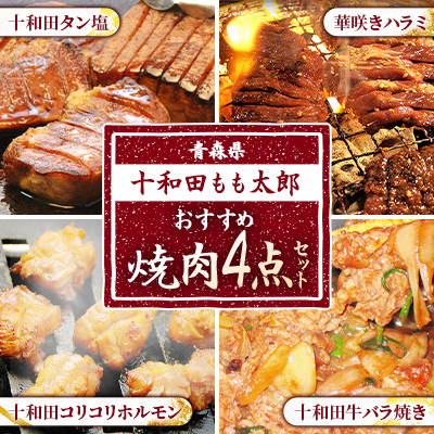おすすめ焼肉4点セット(十和田タン塩、華咲きハラミ、十和田牛バラ焼き、十和田コリコリホルモン)【1146148】