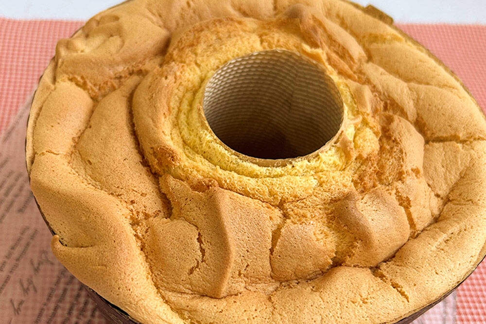 ・シフォンケーキは、十和田市深持産の香り豊かなりんごを使用しております。ベーキングパウダーは使用せず、卵白だけでふわふわ感を実現した自慢の一品です。