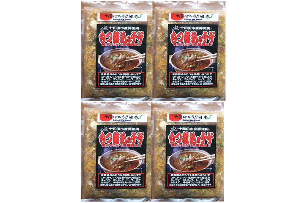 職人がとってもやわらかく仕上げた逸品 【贈答用】モツ煮込みチゲ鍋(惣菜) 350g×4パック(約8人前)パック 豚 もつ煮 十和田もも太郎 [ホルモン ピリ辛 チゲ鍋 レトルト]
