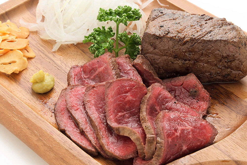 モモ肉は赤身のコクが強く、肉本来の味をしっかり楽しめる部位です。脂が少ないため重くならず、どんな料理にも合わせやすい万能性があります。ローストビーフにすると、短角牛ならではの濃い旨みとしっとりした食感が際立ちます。焼いて召し上がる場合は、焼きすぎないのが美味しく食べるコツです。
